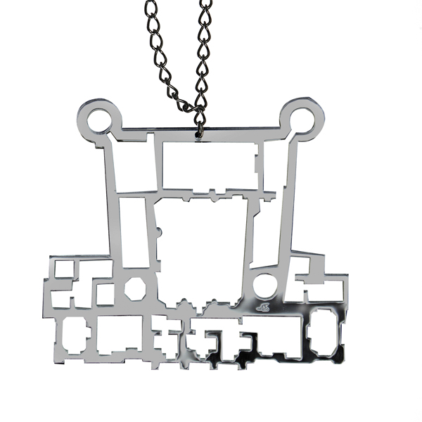 Collana (Argento/Metallo) in plexiglass specchiato rappresentante la pianta Palazzo Madama, omaggio all’arte e alla città di Torino.